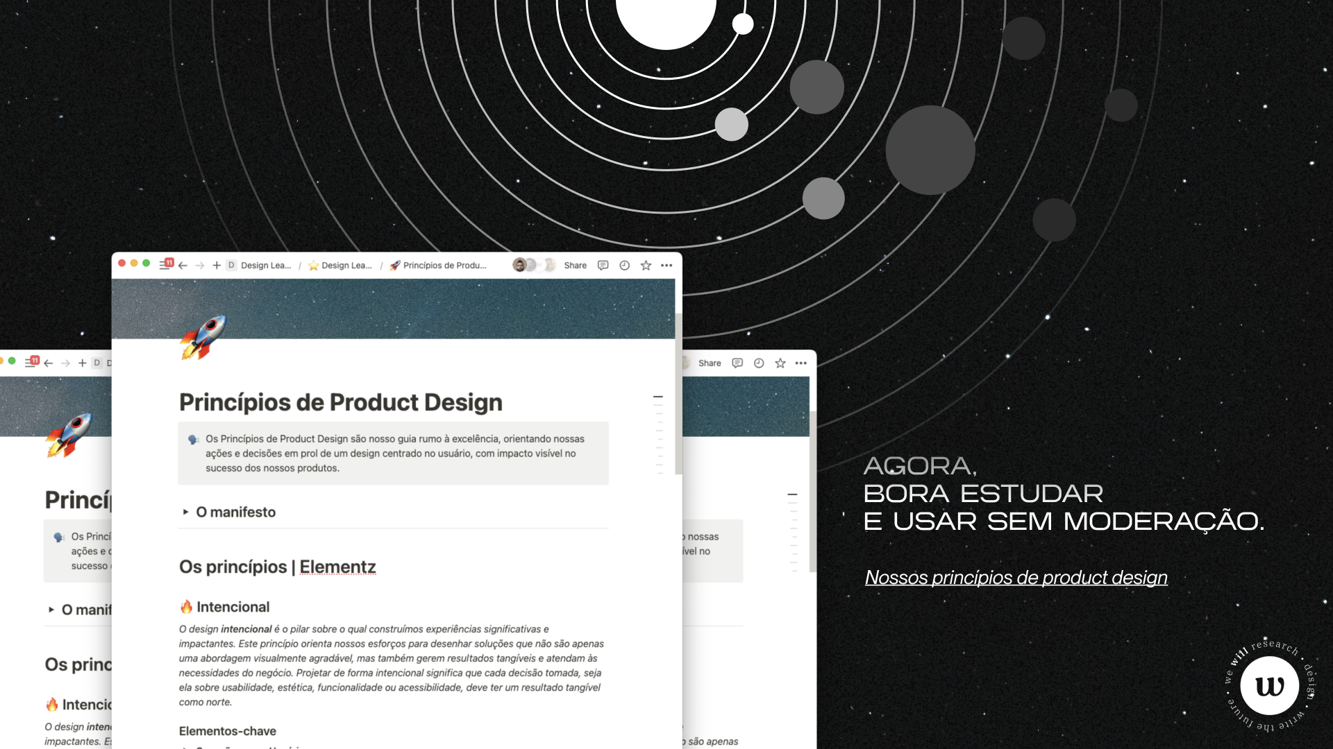 Like the stars, these principles should be present in our daily work, guiding our decisions throughout the design process. For that, they must be clear, easy to understand, resilient enough to endure over time, and adaptable to new learnings and Will’s evolving vision.